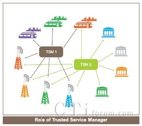 可信服務(wù)管理 (TSM)為復(fù)雜的、有眾多參與者的NFC生態(tài)系統(tǒng)帶來的穩(wěn)定性及可預(yù)見性。其核心作用是分配和管理各個(gè)服務(wù)提供商的應(yīng)用。它是移動(dòng)運(yùn)營商、銀行和公交公司的一個(gè)共同的聯(lián)絡(luò)點(diǎn)。對移動(dòng)NFC應(yīng)用進(jìn)行安全下載和生命周期管?尚欧⻊(wù)管理必須贏得參與各方的信任才能完成這一任務(wù)。