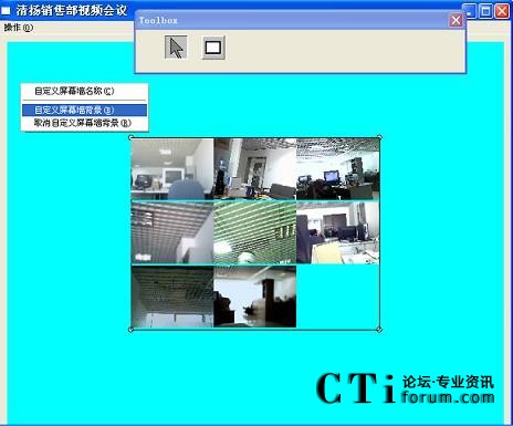 在大多數(shù)人的印象里,使用軟件進(jìn)行視頻會議時所顯示的圖像無論是大小還是顯示的位置都是固定的,無法改變。即使是顯示整個會場,也只能是把全部的圖像都顯示在一個固定的對話框中。而軟件屏幕墻定制的功能,可以隨意的對整個會場進(jìn)行布局,如屏幕墻的背景,名稱,圖像的位置,大小。