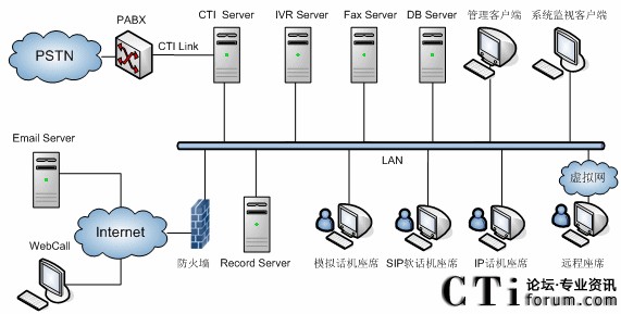 | 11 | CTI Sevrer | 電腦電話應(yīng)用服務(wù),聯(lián)絡(luò)中心通過CTI服務(wù)實(shí)現(xiàn)呼叫控制,呼叫技能路由等 |