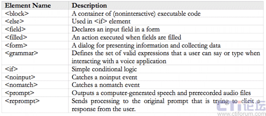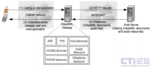 Browser),呼叫控制組件(CCXML Browser),自動語音識別組件(ASR),語音合成組件(TTS)等。這些組件共同組成了VoiceXML的解釋和執(zhí)行平臺。
