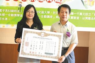 眷村子弟出身的朱順一,交大電子工程系畢業(yè),十三年前,就捐贈(zèng)一千萬(wàn)元給交大,成立“網(wǎng)絡(luò)通訊技術(shù)發(fā)展基金”,培育網(wǎng)通人才,另設(shè)立獎(jiǎng)學(xué)金,濟(jì)助清、交大學(xué)生和竹苗地區(qū)高中清寒學(xué)生。