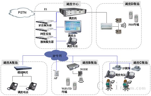 系統(tǒng)支持豐富的調(diào)度終端,包括模擬話機、IP話機、視頻話機,以及WiFi/PHS/TD等制式的手機終端,實現(xiàn)有線無線一體化調(diào)度。