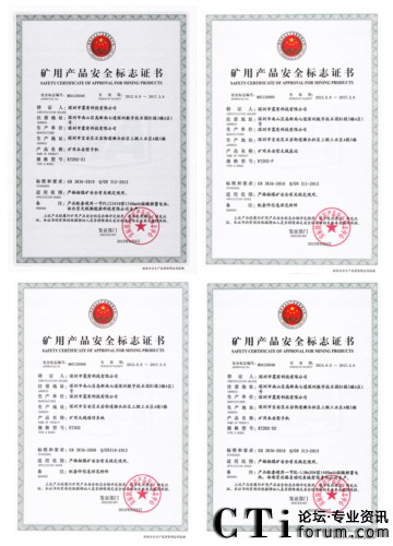 CTI論壇(ctiforum)6月15日消息(記者 楊佳林):震有科技順利通過安標國家礦用產(chǎn)品安全標志中心頒發(fā)礦用無線通信系統(tǒng)、礦用本安型無線基站、礦用本安型手機S1、礦用本安型手機S2的四項礦用產(chǎn)品安全標志證書,這標志著震有科技KT202礦用融合通信系統(tǒng)獲得煤礦安全領(lǐng)域的通行證,為公司大力拓展煤礦能源市場奠定了堅實有利的基礎(chǔ)。