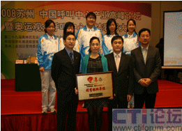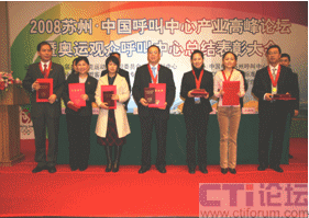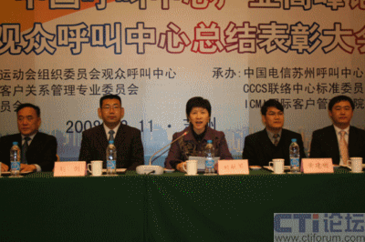 CTI論壇(ctiforum)04月14日消息: 日前,”蘇州 2009中國呼叫中心高峰論壇暨奧運觀眾呼叫中心志愿者表彰大會”在蘇州工業(yè)園區(qū)召開,表彰在奧運期間對奧運呼叫中心作出突出貢獻的十三家志愿者選派單位及先進個人。大會由第二十九屆奧林匹克運動會組織委員會與中國信息化推進聯(lián)盟客戶關(guān)系管理專業(yè)委員會共同主辦,蘇州工業(yè)園區(qū)、CCCS聯(lián)絡(luò)中心標(biāo)準(zhǔn)委員會、ICMI客戶管理學(xué)院(中國區(qū))共同承辦。