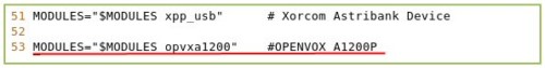 找到 TOPDIR_MODULES= 開頭的這一行,添加opvxa1200 ,保存退出