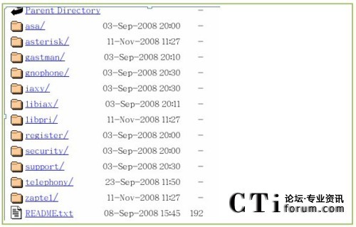 點擊進(jìn)入,找到zaptel ,libpri,asterisk和asterisk-addons 文件夾,分別點擊進(jìn)去下載所對應(yīng)版本的包到/usr/src/目錄下,如圖:
