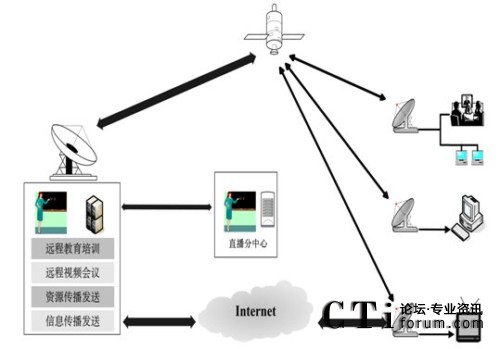 衛(wèi)星通信系統(tǒng)能實(shí)現(xiàn)組播、多點(diǎn)傳送和多媒體通信,支持多種媒體內(nèi)容的高速寬帶傳輸,時(shí)單向、雙向交互式的現(xiàn)代遠(yuǎn)程教育培訓(xùn),音視頻節(jié)目的實(shí)時(shí)播出和傳送,多媒體培訓(xùn)資源和數(shù)據(jù)的推送,音視頻、數(shù)據(jù)同步交互的遠(yuǎn)程視頻會(huì)議,信息資源的傳播和發(fā)送。