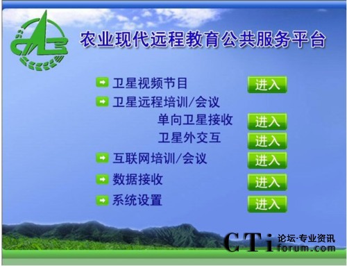 會議所使用的農(nóng)業(yè)現(xiàn)代遠(yuǎn)程教育平臺將先進(jìn)的多媒體寬帶DVB衛(wèi)星通信系統(tǒng)和全面的網(wǎng)絡(luò)遠(yuǎn)程教育培訓(xùn)/會議系統(tǒng),天(衛(wèi)星網(wǎng))地(互聯(lián)網(wǎng))合一,集成廣播、電視和網(wǎng)絡(luò)的功能,形成了廣覆蓋、大容量、多功能、低成本、快捷高效的遠(yuǎn)程教育培訓(xùn)網(wǎng)絡(luò)、技術(shù)培訓(xùn)資源傳輸通道和網(wǎng)絡(luò)視頻會議系統(tǒng),是面向“三農(nóng)”開展多形式多層次現(xiàn)代遠(yuǎn)程教育培訓(xùn)、科學(xué)普及、技術(shù)推廣和信息傳播的公共服務(wù)平臺。該平臺包括:單向廣播式衛(wèi)星直播系統(tǒng)、雙向衛(wèi)星交互式培訓(xùn)/會議系統(tǒng)、衛(wèi)星外交互培訓(xùn)/會議系統(tǒng)(衛(wèi)星接收,互聯(lián)網(wǎng)回傳)和地面互聯(lián)網(wǎng)雙向交互培訓(xùn)/會議系統(tǒng),適用于純衛(wèi)星網(wǎng)絡(luò)和衛(wèi)星網(wǎng)、互聯(lián)網(wǎng)混合接入等各種網(wǎng)絡(luò)環(huán)境。
