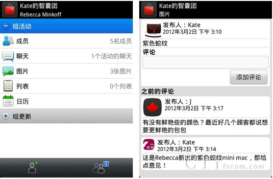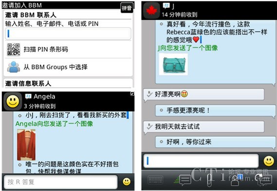 凱特周手袋為能迎合中國消費(fèi)者的品位需求,在引進(jìn)獨(dú)立設(shè)計(jì)師品牌的手袋時(shí),都要充分吸取分布于國內(nèi)各地的導(dǎo)購人員的建議,這就形成了Kate極其信賴的智囊團(tuán)。然而,智囊團(tuán)的應(yīng)用卻極大的受到地域限制:當(dāng)Kate在美國決定是否引進(jìn)某款手袋時(shí),在北京的小J、在上海的小Q以及在深圳的小M很難及時(shí)的加入到討論中。直到她們?nèi)渴褂昧撕谳悄苁謾C(jī)和服務(wù),其中包括的一款即時(shí)通訊工具BlackBerry Messenger(BBM)為智囊團(tuán)發(fā)揮作用提供了便利的通訊條件。BBM支持不同國家運(yùn)營商的黑莓用戶自由的互相添加為好友、聊天、分享圖片,其群組功能還支持分享語音文件、日歷和列表等。