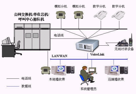 VoiceLink在線錄音監(jiān)聽系統(tǒng)(V3.X)是北京國創(chuàng)富盛通信技術(shù)有限公司基于CTI技術(shù)的又一項(xiàng)應(yīng)用,VoiceLink在對多個(gè)電話進(jìn)行錄音的同時(shí),還對被錄音的電話進(jìn)行在線監(jiān)聽,錄音文件可存放在本地、遠(yuǎn)端或通過SCSI接口備份到磁帶上,系統(tǒng)具有界面友好、操作簡單、性能可靠、功能強(qiáng)大等諸多特點(diǎn)。因采用外掛字庫,操作界面可以擁有多種語言版本。VoiceLink