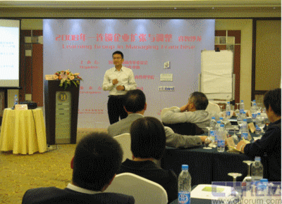 11月16日,20余位連鎖企業(yè)高管放棄周日休息,趕到上海虹橋迎賓館多功能大廳參加由國(guó)家發(fā)展和改革委員會(huì)國(guó)際合作中心與INSEAD歐洲工商管理學(xué)院聯(lián)合主辦、北京訊鳥(niǎo)軟件組織協(xié)辦的“動(dòng)蕩時(shí)代—連鎖企業(yè)擴(kuò)張與調(diào)整”睿智沙龍活動(dòng)。INSEAD歐洲工商管理學(xué)院的陳教授就當(dāng)今全球經(jīng)濟(jì)動(dòng)蕩時(shí)代,連鎖企業(yè)擴(kuò)張與調(diào)整等課題與參會(huì)者進(jìn)行了深入探討。