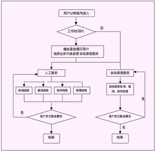 客戶也可以選擇自動語音服務方式,根據(jù)系統(tǒng)的語音提示輸入按鍵,選擇類別,將自己所需要的服務要求以及自己的聯(lián)系方式信息以留言錄音的方式保存在系統(tǒng)中。系統(tǒng)同時還支持自動傳真方式,客戶可以通過傳真機進入本系統(tǒng),通過按鍵選擇傳真方式,將所需要的服務要求等的文本內(nèi)容傳真給系統(tǒng),系統(tǒng)自動接受并存入數(shù)據(jù)庫。