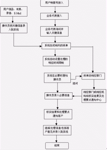 本系統(tǒng)能夠?qū)?shù)據(jù)庫中每天收到的各種類型的信息進行整理后供查詢,或?qū)⑿畔⒌慕y(tǒng)計報表和其他的各種信息匯總輸出,上報給相關部門(訪銷部或物流中心)或領導。各相關部門調(diào)查處理結果和答復意見出來后,再由座席話務人員通知到本人。也可由系統(tǒng)自動撥通聯(lián)系電話,由系統(tǒng)通過傳真或電腦語音自動播報調(diào)查處理結果和答復意見來完成回饋。
