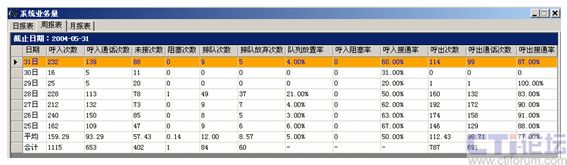 主要考察系統(tǒng)分項(xiàng)業(yè)務(wù)指標(biāo),如中繼線(xiàn)、分機(jī)、座席員、業(yè)務(wù)組等,便于了解系統(tǒng)運(yùn)行狀況