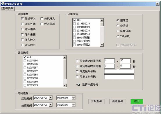 如圖所示,可以設(shè)定多種查詢(xún)條件組合,查找通話(huà)記錄。