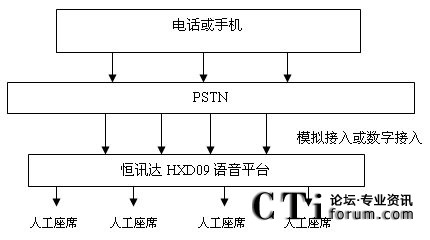 配置恒訊達公司HXD09的PRI或是7號信令接入,系統(tǒng)可自動與交換機通信獲取主叫號碼,話務(wù)員數(shù)量根據(jù)需要配置。