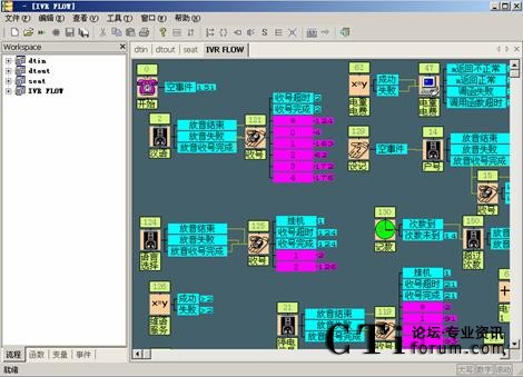 根據(jù)對(duì)客戶應(yīng)用系統(tǒng)的需求分析,列出您需要的提示音、信號(hào)音、函數(shù)以及變量,并且用流程生成器生成相應(yīng)的提示音表、信號(hào)音表、函數(shù)表和和變量表。這些表在應(yīng)用系統(tǒng)運(yùn)行過程中為CTISERVER 程序提供正確的信息。