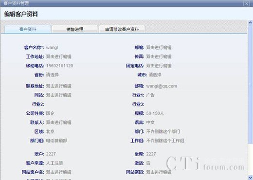 新添加的客戶(hù)會(huì)出現(xiàn)在客戶(hù)列表中。雙擊任一條客戶(hù)信息,可以查看其詳細(xì)的客戶(hù)資料。也可以根據(jù)業(yè)務(wù)需要對(duì)客戶(hù)執(zhí)行“釋放”或“黑名單”功能。