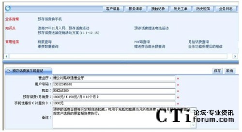 要實現(xiàn)此目的,IT支撐系統(tǒng)將高技能座席的處理能力“推送”給普通座席。第一章我們論述了IT支撐系統(tǒng)可以以客戶應用場景為核心,通過分析流程分析客戶訴求找到客戶真正的需求?梢詫⑦@一思路推演下去,針對客戶的某個具體需求,呼叫中心制定統(tǒng)一的解決方案。我們以下面的“預存話費換手機”為案例。通過先期溝通,座席已經(jīng)知曉這是客戶的真正訴求,只需要選擇好“預存話費換手機”的業(yè)務類型,IT支撐系統(tǒng)會顯示出集成在一個頁面中的全套解決方案:處理此訴求可能用到知識庫中的三個知識點;需要查詢的客戶信息,經(jīng)常給客戶發(fā)送的短信內(nèi)容;處理此訴求可能執(zhí)行的登記任務,……