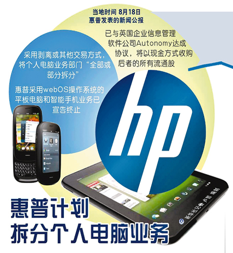 在上周五的財(cái)報(bào)會(huì)議上,惠普突然宣布三個(gè)重要決定:剝離PC業(yè)務(wù)、關(guān)閉WebOS的硬件業(yè)務(wù)、102億美元并購(gòu)英國(guó)第二大軟件廠商Autonomy公司。這意味著,惠普未來(lái)將專(zhuān)注于軟件領(lǐng)域。