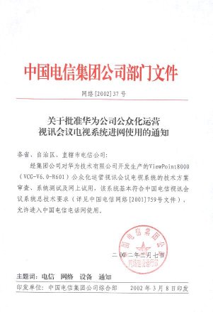 日前,在中國電信集團(tuán)公司組織的“新視通”公眾化視訊運(yùn)營許可證的測試中,華為公司具有完全自主知識(shí)產(chǎn)權(quán)的“視點(diǎn)通”ViewPoint 8000綜合視訊系統(tǒng)以其先進(jìn)的設(shè)計(jì)理念和卓越的產(chǎn)品性能,順利通過測試,成為業(yè)界第一個(gè)獲得中國電信集團(tuán)公司公眾視訊運(yùn)營許可證的產(chǎn)品。同時(shí)華為公司也成為目前業(yè)界唯一獲此認(rèn)證的設(shè)備供應(yīng)商。