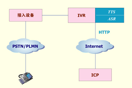 使用VXML語(yǔ)言編寫(xiě)流程腳本或網(wǎng)頁(yè),該腳本或網(wǎng)頁(yè)的內(nèi)容與固網(wǎng)短信終端上的菜單相對(duì)應(yīng),普通用戶可通過(guò)語(yǔ)音方式瀏覽該菜單。當(dāng)用戶選擇信息點(diǎn)播后,VoiceIE系統(tǒng)模擬普通固網(wǎng)短信終端向ICP發(fā)送請(qǐng)求,并接收ICP發(fā)來(lái)的文字信息,然后通過(guò)TTS技術(shù)向用戶播放文字信息。當(dāng)然,固網(wǎng)短信終端也可通過(guò)菜單瀏覽方式使用這些采用VXML語(yǔ)言編寫(xiě)的業(yè)務(wù),采用VXML語(yǔ)言編寫(xiě)網(wǎng)頁(yè)的工作可由ICP來(lái)完成。