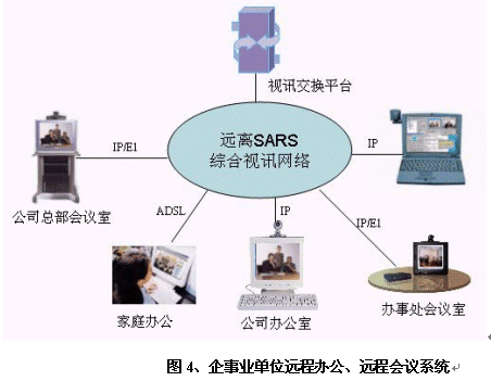 非典型肺炎不但對(duì)國(guó)家的經(jīng)濟(jì)造成了重大的損失,而且使得全社會(huì)對(duì)"非典"噤若寒蟬,大家對(duì)出差甚至外出都異常緊張。華為公司提供為個(gè)人家庭辦公、探親訪友的遠(yuǎn)程多媒體通信解決方案,大家在家里即可通過網(wǎng)絡(luò)和親朋好友"面對(duì)面"交流、在家中辦公。減少外出、遠(yuǎn)離人員眾多地區(qū),有效預(yù)防非典。對(duì)于有條件的用戶群可以推薦在現(xiàn)有寬帶線路或新增寬帶線路上購(gòu)買軟件,即可實(shí)現(xiàn)親朋好友間的個(gè)人視頻通信;對(duì)于暫不具備寬帶條件的群體,如學(xué)生等,可以考慮在重點(diǎn)營(yíng)業(yè)廳設(shè)立專門會(huì)議室或者視訊公話亭等,提供預(yù)約視頻服務(wù),滿足其溝通的需求。
