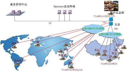 中國遠洋(集團)公司全球會議電視系統(tǒng)覆蓋全國13個分部和全球8個分公司,系統(tǒng)主會場在中遠集團公司總部。系統(tǒng)采用ISDN、E1、IP混合組網(wǎng),使用了一套ViewPoint 8620視訊交換平臺、20套ViewPoint8020plus視訊終端和3套Openeye桌面終端,實現(xiàn)了中遠(集團)公司和全球所有分支機構(gòu)之間的遠程會議和業(yè)務培訓。
