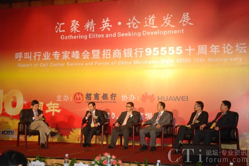 CTI論壇(ctiforum)10月29日消息(記者 張塵):10月23日,由招商銀行主辦,華為技術(shù)有限公司協(xié)辦的“匯聚精英·論道發(fā)展”呼叫行業(yè)專家峰會暨招商銀行95555十周年論壇在深圳圣廷苑酒店舉行。招商銀行總行副行長丁偉先生和華為公司高級副總裁鄧飚先生出席了本次大會。來自銀行、證券、基金、保險等38家主要金融機構(gòu)及南航、聯(lián)想、萬科、支付寶等30家國內(nèi)知名企業(yè)高管逾200余人參加。與會嘉賓分享了國際與國內(nèi)呼叫中心建設(shè)經(jīng)驗、信息化的發(fā)展潮流、呼叫中心戰(zhàn)略轉(zhuǎn)型與運營管理能力提升等內(nèi)容。華為鄧飚先生表示:“十年來,招商銀行電話銀行中心的成功表明了華為向客戶提供定制化、個性化貼身服務(wù)策略的成功!