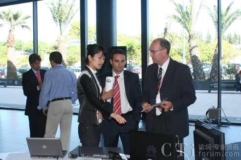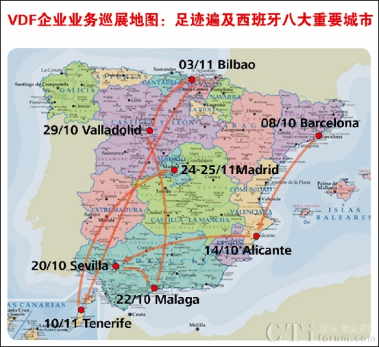 Vodafone 09企業(yè)業(yè)務(wù)巡展是Vodafone攜手10家重要合作伙伴和28家SP針對西班牙企業(yè)用戶舉行的一個大型巡展,整個展會歷時兩個月,以西班牙的經(jīng)濟文化中心Barcelona為起點,途徑Alicante、Sevilla、Malaga、Valladolid、Bilbao、Tenerife,最后于11月24-25號在西班牙首府Madrid隆重謝幕。共有1萬多人、五千多家企業(yè)參加了本次展會,受邀企業(yè)覆蓋到金融、貿(mào)易、電信、交通、建筑、服務(wù)、醫(yī)療保健等重要行業(yè),其中大都為移動辦公需求旺盛需要保持實時協(xié)同的中小型企業(yè)。展會期間,華為歐洲地區(qū)部多位高層領(lǐng)導(dǎo)親臨展會現(xiàn)場指導(dǎo)工作,包括Vodafone系統(tǒng)部副總Edward Chan和張文林、代表處代表謝新平、歐洲軟件業(yè)務(wù)部領(lǐng)導(dǎo)林劼。領(lǐng)導(dǎo)們和客戶親切交流,并廣泛了解了其他SP展出的多項創(chuàng)新業(yè)務(wù)。