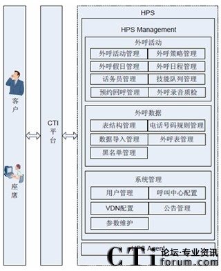 Server)提取HPS Management中導入的客戶數據,自動批量的執(zhí)行外呼任務?蛻艉敉ê,簽入HPS Agent 的話務員為客戶提供語音服務。