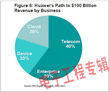 為了實(shí)現(xiàn)下一個(gè)成長目標(biāo),華為將專注于企業(yè)、設(shè)備和云計(jì)算等領(lǐng)域中的新機(jī)會(huì)。到2020年,上述每個(gè)領(lǐng)域都將占該公司營業(yè)收入的20%,合計(jì)占60%。其余40%營業(yè)收入將來自該公司的傳統(tǒng)電信設(shè)備業(yè)務(wù)。