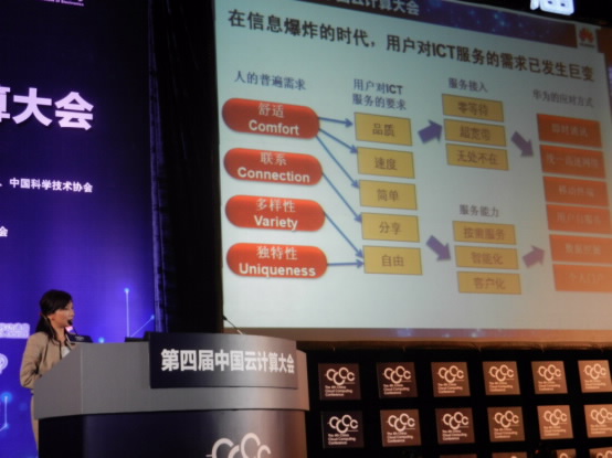 圖片說明:華為IT產(chǎn)品線副總裁朱近之女士在中國云計算大會做主題演講