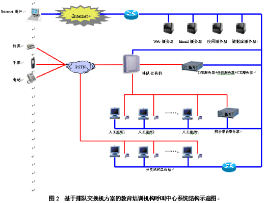 教育培訓(xùn)機(jī)構(gòu)呼叫中心系統(tǒng)是一個(gè)集合電話語音、計(jì)算機(jī)網(wǎng)絡(luò)、數(shù)據(jù)庫等技術(shù)的綜合信息服務(wù)平臺(tái),主要由自動(dòng)語音應(yīng)答系統(tǒng)、人工座席和數(shù)據(jù)庫系統(tǒng)三部分組成。