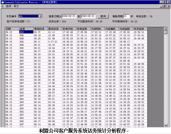 隨著利盟公司客戶服務(wù)系統(tǒng)的開通,使傳統(tǒng)的電話服務(wù)提高到了一個(gè)新的階段;一方面借助客戶服務(wù)系統(tǒng)提供的統(tǒng)計(jì)分析功能,使客戶服務(wù)中心的績效考核更加準(zhǔn)確、高效和科學(xué);另一方面通過應(yīng)用先進(jìn)的信息技術(shù)和產(chǎn)品,可以極大地提高客戶服務(wù)的質(zhì)量、效率和滿意度,從而對提升公司形象,促進(jìn)產(chǎn)品銷售發(fā)揮積極的作用。