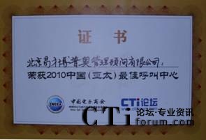CTI論壇(ctiforum)10月14日消息(記者 潘婷婷):2010年9月28日,由中國電子商會呼叫中心與客戶關(guān)系管理專業(yè)委員會(CNCCA)主辦,國家工業(yè)和信息化部支持,CTI論壇承辦的2010中國呼叫中心產(chǎn)業(yè)峰會暨中國(亞太)最佳呼叫中心頒獎典禮在北京成功召開。北京易才博普奧管理顧問有限公司通過行業(yè)推薦、評審專家小組的電話暗訪、入戶調(diào)研等多個環(huán)節(jié)的嚴格審核,憑借在人力資源外包服務(wù)領(lǐng)域的卓越表現(xiàn)從眾多企業(yè)中脫穎而出,并最終摘取“2010中國(亞太)最佳呼叫中心”桂冠。