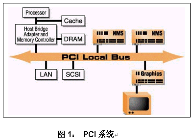 PCI(Peripheral Component Interconnect)本地總線是采用多路地址和數(shù)據(jù)線的高性能32位/64位總線。在采用NMS板卡的系統(tǒng)中,PCI總線用來在NMS板卡和主機(jī)處理器之間傳遞數(shù)據(jù)和控制信息。其它外圍附加板卡通常與NMS板卡共享總線。(參見圖1)