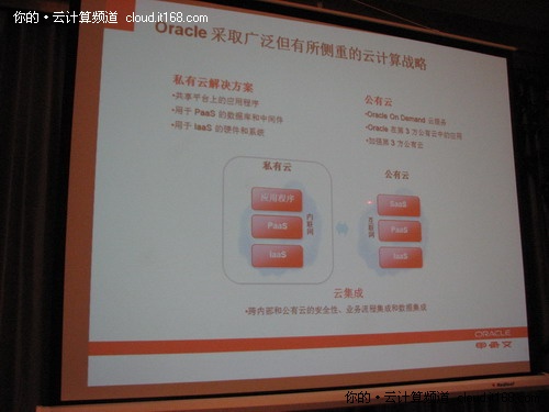 在媒體溝通會(huì)上,喻思成通過(guò)甲骨文圍繞私有云還是公有云,甲骨文關(guān)注IaaS、PaaS還是SaaS,甲骨文為云計(jì)算提供什么樣的產(chǎn)品以及這些產(chǎn)品的價(jià)值體現(xiàn)在哪里這些問(wèn)題做了詳細(xì)介紹。