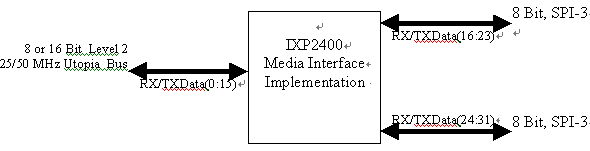 下圖是使用Intel IPX2400的范例,說明規(guī)劃時可能要處理的一些接口。請注意,許多網(wǎng)絡(luò)處理器允許接口被設(shè)定成可支持多種不同的傳輸,以下只是其中一種可能的設(shè)定范例。