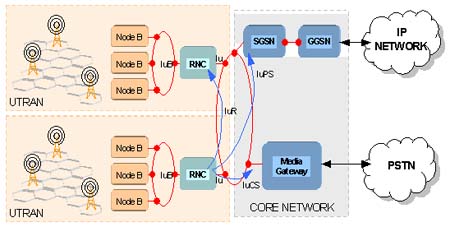B)和RNC。核心網(wǎng)則包括傳統(tǒng)電路交換連接和IP網(wǎng)絡(luò)服務(wù)。