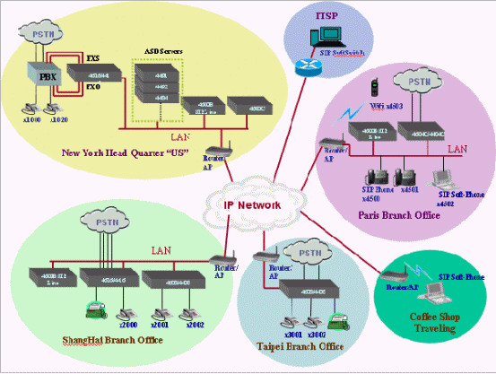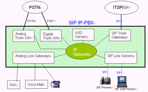MOSA的SIP IP-PBX是一個完整的商用交換機系統(tǒng),能提供企業(yè)完整的通信服務,因應各種不同接口的連結(jié)需求,例如公眾電信系統(tǒng)(PSTN)、SIP服務商、傳真機、電話機、語音信箱、SIP IP Phone、SIP Soft-phone、Wifi-Phone以及各種SIP終端設備等等,MOSA的SIP IP-PBX提供模塊化的接口連接設備,每一種接口連接設備均配備有以太網(wǎng)絡接口,可以透過IP網(wǎng)絡相互連結(jié),使得各分公司之間通信零距離。MOSA SIP IP-PBX除了解決基本的接口連接外,也提供各式各樣的應用服務服務器(Application Service Devices),增進整體系統(tǒng)的功能,譬如:網(wǎng)絡型電話會議,網(wǎng)絡型廣播,移動辦公功能等。