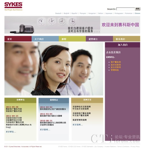 CTI論壇(ctiforum)8月8日消息(記者 潘婷婷): 為了更全方位地展現(xiàn)賽科斯中國的公司風(fēng)貌,公司網(wǎng)站(www.sykes.com.cn)經(jīng)改版后于8月4日全新登場。新網(wǎng)站在風(fēng)格、結(jié)構(gòu)、內(nèi)容等方面作了整體改進,使得整個網(wǎng)站的表現(xiàn)更清晰,界面更友好。