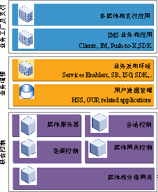 業(yè)務(wù)應(yīng)用層包括IMS基本的語音、消息和多媒體業(yè)務(wù)外,還包括了擴展的各類面向大眾和企業(yè)市場的社團通信,信息、娛樂等多媒體業(yè)務(wù)和應(yīng)用,其中包括運營商自己提供的業(yè)務(wù)和由第三方業(yè)務(wù)提供商提供的業(yè)務(wù)。