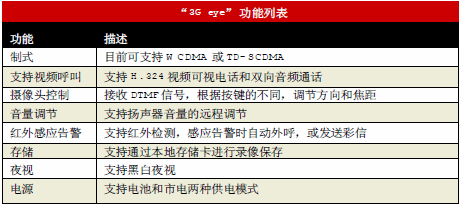 “3Geye”業(yè)務是由上海貝爾股份有限公司開發(fā)的一個針對家庭及小型商品市場的視頻監(jiān)控類業(yè)務,它利用3G中獨有的64K視頻電路域,建立起用戶與前端攝像頭的視頻電話,從而達到視頻監(jiān)控的目的。