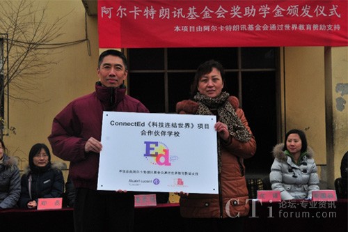 CTI論壇(ctiforum)3月6日消息(記者 浩宇):近日,法國阿爾卡特朗訊基金會(Alcatel-Lucent Foundation)與美國非營利組織世界教育(World Education)在北京市大興區(qū)農(nóng)民工子弟學!埡W校聯(lián)合舉辦公益助學活動,來自阿爾卡特朗訊中國旗艦企業(yè)——上海貝爾及世界教育的志愿者為45名貧困生、72名成績優(yōu)秀學生、244名成績進步獎獲得者共計361人發(fā)放獎助學金和獎狀。此次活動是ConnectEd“科技連結世界”項目協(xié)助流動青少年“透過科技擁抱世界”系列公益活動的重要一站,ConnectEd “科技連結世界”項目由阿爾卡特朗訊基金會(Alcatel-Lucent Foundation)與世界教育(World Education)共同在全球推動。作為志愿者之一,上海貝爾執(zhí)行副總裁、阿爾卡特朗訊中國區(qū)產(chǎn)品與研發(fā)負責人莊靖博士參與了此次活動,并為阿爾卡特朗訊ConnectEd項目合作校揭牌。雙方還在北京市昌平區(qū)新源學校舉行了公益助學活動,為45名貧困生、39名成績優(yōu)秀學生、52名成績進步獎獲得者共計136人發(fā)放獎助學金。