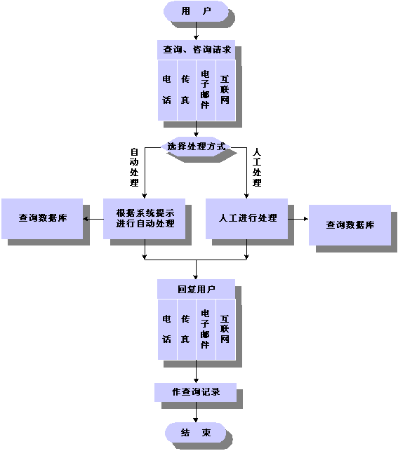 如:可開展信息咨詢業(yè)務(wù),為患者提供具體企業(yè)、事業(yè)單位的信息查詢,包括企業(yè)介紹、產(chǎn)品服務(wù)介紹、價(jià)格、功能、銷售地點(diǎn)、聯(lián)系電話、服務(wù)流程、辦事程序等。實(shí)現(xiàn)的方式包括口頭咨詢、語音服務(wù)、傳真服務(wù)、E-Mail等。系統(tǒng)對(duì)患者咨詢的反饋方式有:電話通知、傳真通知、人工回答、電子郵件。