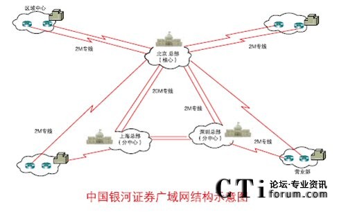 銀河證券采用二級(jí)網(wǎng)絡(luò)結(jié)構(gòu),其中一級(jí)采用三中心的冗余結(jié)構(gòu);二級(jí)為各營(yíng)業(yè)部。營(yíng)業(yè)部線路上采用雙專線的冗余線路方式,其中兩條線路分別屬于兩家不同的電信運(yùn)營(yíng)商。營(yíng)業(yè)設(shè)備上采用雙設(shè)備,保證了營(yíng)業(yè)部在設(shè)備上的冗余,避免硬件設(shè)備單點(diǎn)故障,同時(shí)實(shí)現(xiàn)了業(yè)務(wù)網(wǎng)與辦公網(wǎng)的物理分離。