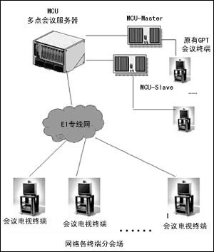 根據(jù)用戶的需求,包括擴(kuò)容建設(shè)26個(gè)點(diǎn)的會(huì)議電視系統(tǒng),網(wǎng)絡(luò)環(huán)境為DDN專線E1(2Mbps)方式等,并經(jīng)過嚴(yán)格招標(biāo)、測(cè)試和反復(fù)論證,該系統(tǒng)采用了VTEL美國(guó)視訊公司的會(huì)議室型終端產(chǎn)品銀河(Galaxy)755,以及多點(diǎn)會(huì)議服務(wù)器(MCU)。