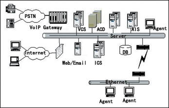 系統(tǒng)內(nèi)部所有媒體呼叫均采用IP數(shù)據(jù)包的格式由核心ACD Server統(tǒng)一處理,完成呼叫控制、路由處理、與呼叫同步的用戶數(shù)據(jù)管理及信息監(jiān)視。對于整個系統(tǒng)而言,雖然媒體接入方式各不相同,但路由策略卻可以完全一致。客戶可隨時隨地通過各種媒體與企業(yè)進行緊密聯(lián)系。通過核心控制系統(tǒng),采用一致的路由方式,可以追蹤及管理所有媒體以及一切客服系統(tǒng)人力資源。