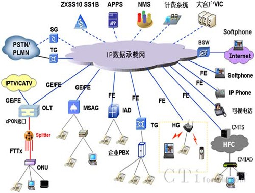 - 中興通訊作為軟交換技術(shù)的倡導(dǎo)者和領(lǐng)跑者,以強(qiáng)大的研發(fā)為基礎(chǔ)持續(xù)創(chuàng)新,為客戶提供有競(jìng)爭(zhēng)力的融合的NGN解決方案,助力客戶實(shí)現(xiàn)長(zhǎng)期價(jià)值和潛在增長(zhǎng)。擁有最全的NGN產(chǎn)品系列,包括SS/TG/SG/MSAG/SBC/IAD/HG/EMS/HLR、業(yè)務(wù)平臺(tái)、融合通信IP-PBX、承載、傳輸?shù)萅GN設(shè)備,有效整合資源,快速提供滿足客戶化需求的建設(shè)方案。